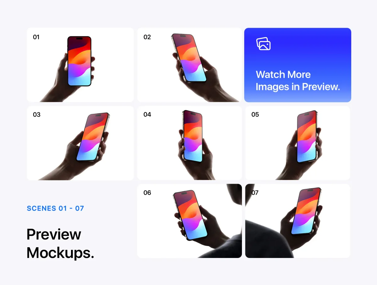 Our stunning brand-new bundle of iPhone 15 Pro in hands mockups. Perfect for use on your website, app, and design presentations. You can easily change and place your custom screen design | Image with a few clicks using Smart Objects. Features: ✦ 15 - iPhone 15 Pro in Hand Mockups ✦ Each mockup has 4 default colors ✦ Each file's resolution - 3600x2400 300 DPI ✦ Each mockup is very well organized and easy to use. ✦ Customizable colors of the scene ✦ Optional reflections on screen Note: NOT included wallpapers or custom UI screens used. Is it only for preview images.