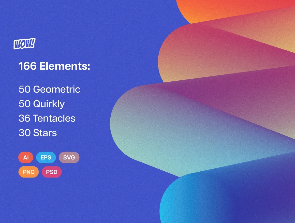 What is common among geometric shapes, quirky forms, stars and tentacles? All of them united to become this elements bundle, that will make any design more attractive and сaptivating! Though such shapes set sounds like something incompatible, the reality is the opposite and you’ll get it the moment you see it yourself. Trust the process and be ready for a mind-blowing result! The bundle we carefully prepared will make your artistic heart happy not only with the 4 included styles, but also the wide choice of formats — AI, EPS, SVG, and PNG. We added 4 high-quality PSD files for each shape of the set, and they all provide the noise option to diversify your designs. Well, with the 166 elements in total you will surely be able to make unique artworks, there is no doubt about it! The nice thing is though the shapes are quite different, they were made in a unified style, so you can experiment, mix them and just feel all the creative freedom. ✦ 4 high-quality PSD files ✦ 5000 х 5000px, 300dpi ✦ 4 styles included (geometric, quirky, stars, tentacles) ✦ 4 formats (AI, EPS, SVG, PNG) ✦ 166 elements in total ✦ Noise option