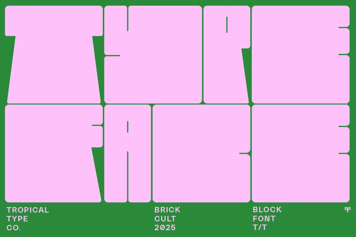 Brick Cult is an experimental as it gets. Chunky block letters that go together like Tetris. Use it as a background with text over the top, or straight up for posters & logos. Mix and Match the caps and lowercase to get the perfect width.