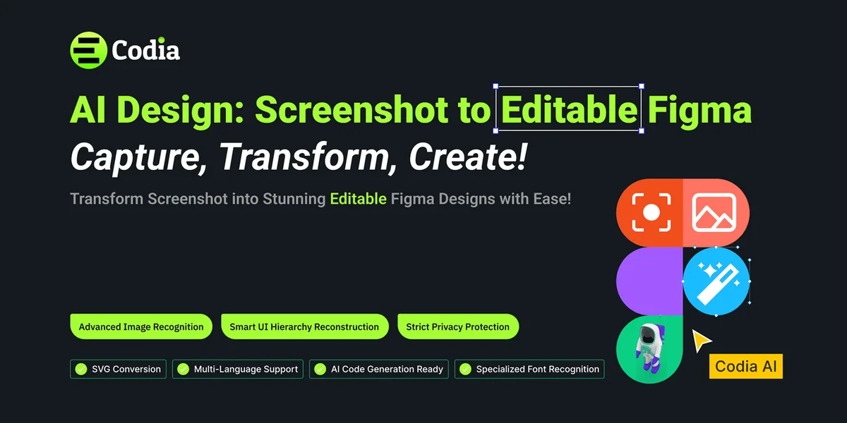 Transform screenshots into editable Figma UI designs effortlessly. Simply upload a snapshot of an app or website, and let our tool do the rest. Then, begin our design journey. Trusted by over 50,000 professional designers from 181 countries, our tool has generated over 1 million designs, powering creativity across the globe.