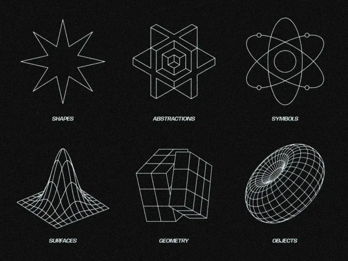 Abstract vector linear illustrations from simple to complex shapes ✦ 350+ Linear Vector Elements ✦ Easy-to-Use in Sketch and Figma Library ✦ SVG versions available