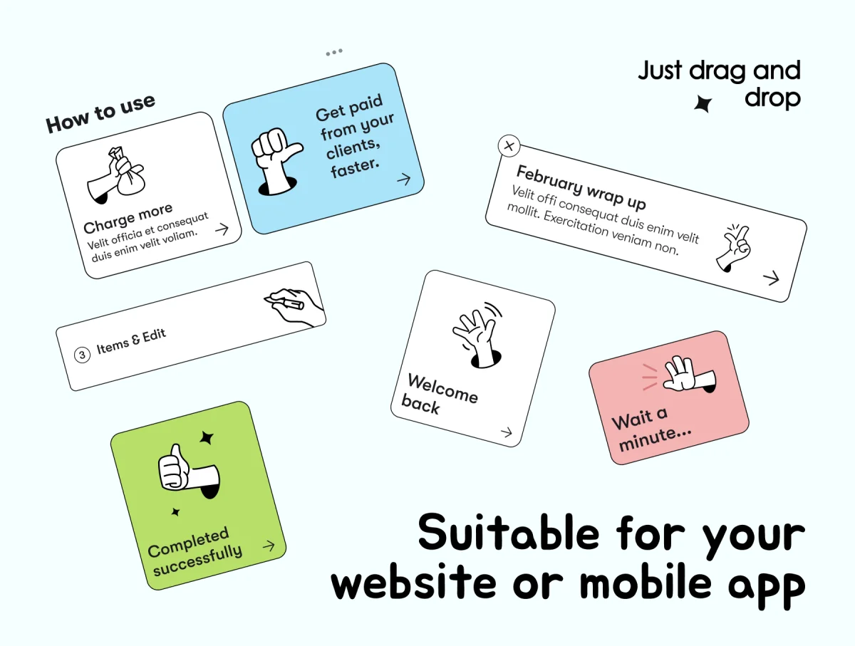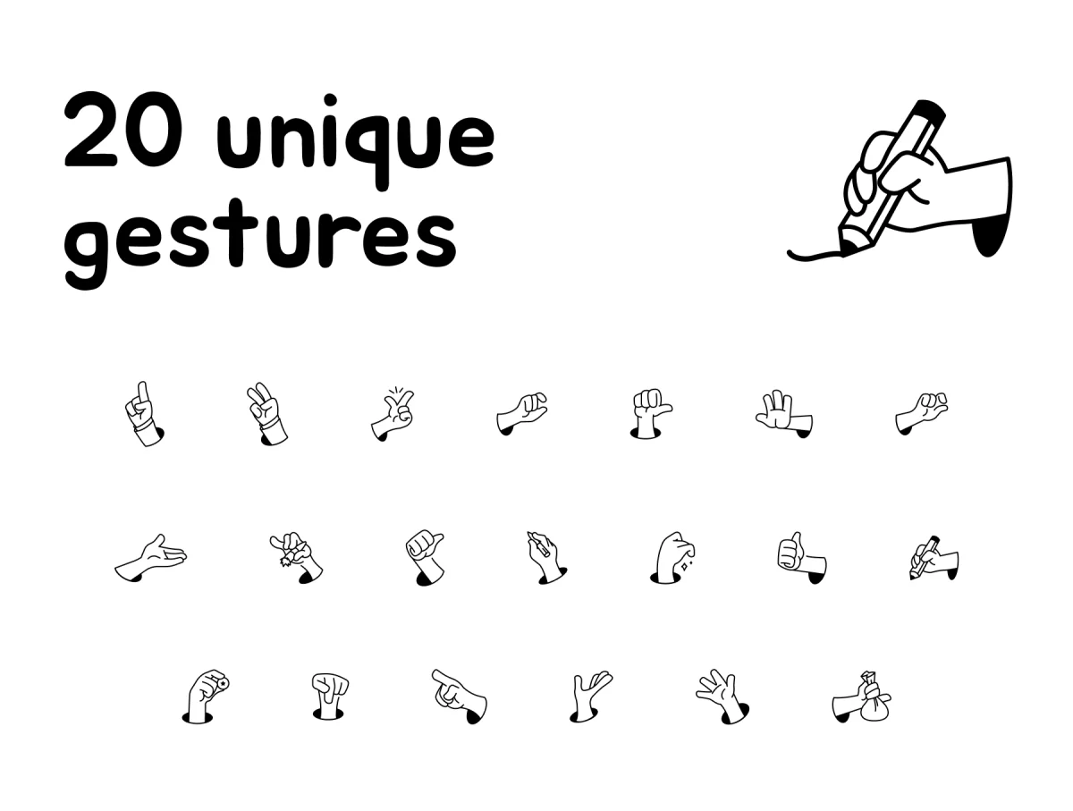 A collection of hand-drawn mini illustrations with a sketchy style.This collection features 20 distinct illustrations presented in four color styles, all fully vectorized and effortlessly customizable. Available in Figma, Illustrator, SVG, and EPS. ✦ Fully editable vectors ✦ High-resolution assets ✦ 4 colors style (changeable) ✦ 20 unique gestures ✦ Hand-drawn