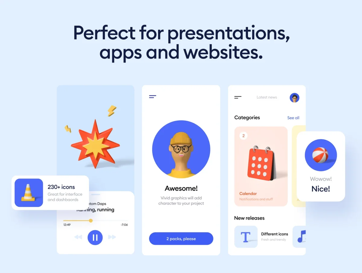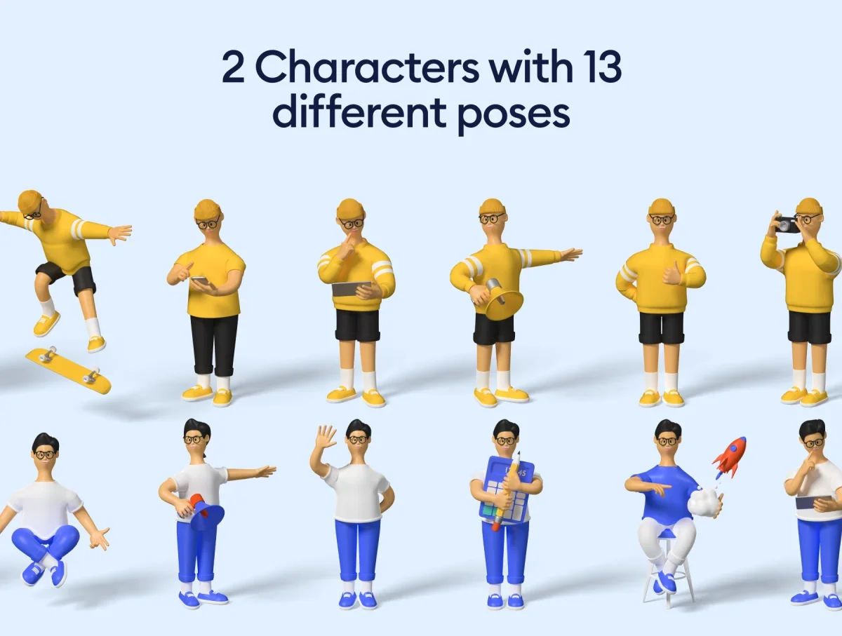 Kukla 2.0 with more then 250 elements. You can use it as icon set or create small scenes/illustrations. We've added different angles to objects so you can add more dynamic to compositions. All elements fit together. Just grab what you like for your project and make your own scene in no time. Perfect for apps, websites and presentations ✦ 253 total objects ✦ 2 scene angles ✦ 2 characters ✦ 13 character poses ✦ Separate shadows ✦ High resolution