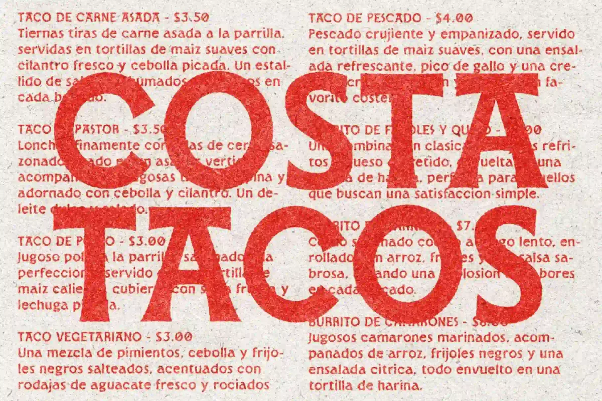 Las Flores is a serif typeface of Mexican influence, both modern and ancient. It pair perfectly with the directors italic and heyday display, both found in this shop! Throw a bit of texture on top for maximum nostalgia.