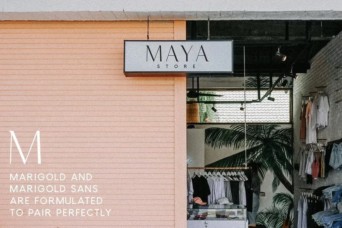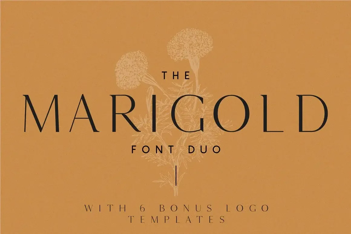 Marigold is a unique font that blends serif and sans serif. It is perfectly paired with Marigold Sans, a minimal tagline and body copy font. I have added 6 bonus editable logos created around this font duo.