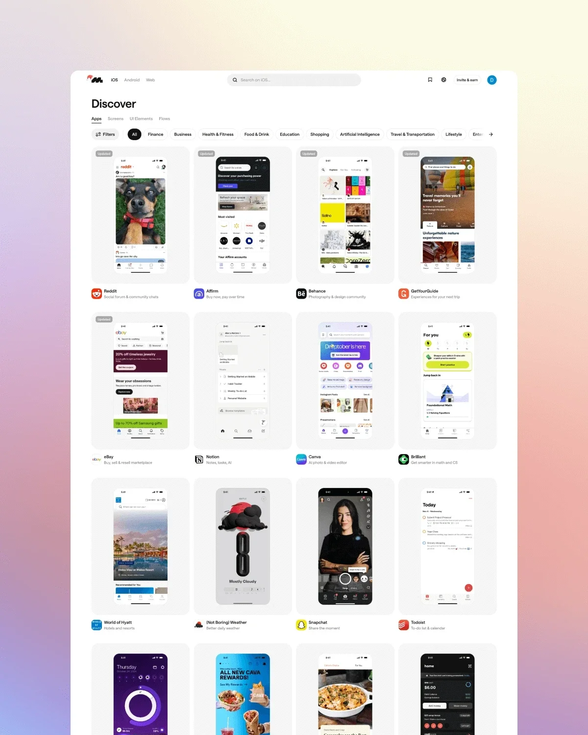 Mobbin is a curated platform for UX and UI designers looking for inspiration and best practices. It offers an extensive collection of hand-picked mobile design patterns from top apps like Facebook, Airbnb, and Uber. Designs are meticulously categorized by elements like onboarding, navigation, and user profiles. This makes it easy to find specific examples. Mobbin also gives detailed screenshots and annotations to help designers understand the context and use of each design pattern. Perfect for designers looking to find all inspirations in one place and stay updated with the latest trends in mobile app design.