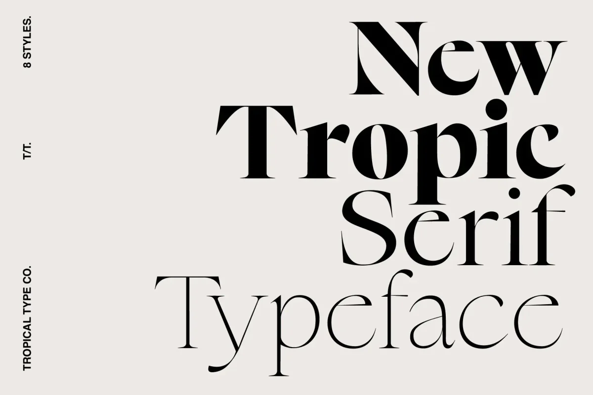 New Tropic is your go to serif font family. A modern typeface that is stylish but also generic enough to be used over and over. 4 distinct weights that all come with italics are included: ✦ Light ✦ Light Italic ✦ Regular ✦ Regular Italic ✦ Bold ✦ Bold Italic ✦ Text ✦ Text Italic