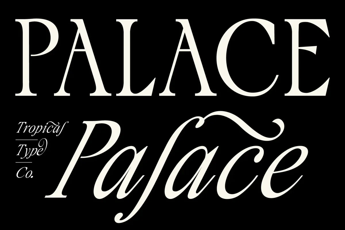 Palace is a classical serif loaded with flourishes and alternates for a chic vintage feel. It's got tall caps, italics, catchwords, multiple ampersands and more. Open up your glyphs panel and explore all the characters!